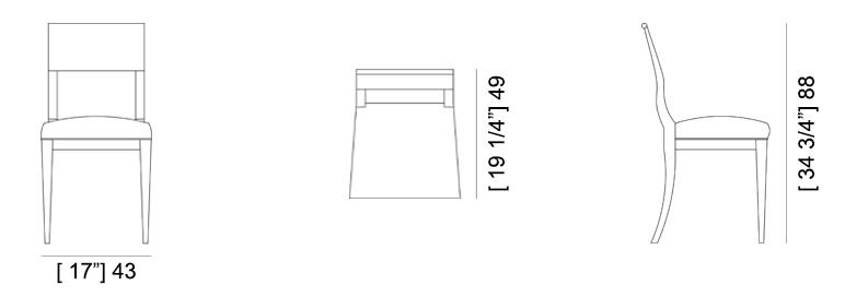 Sedia in legno di ciliegio con schienale in legno sagomato. Seduta imbottita.