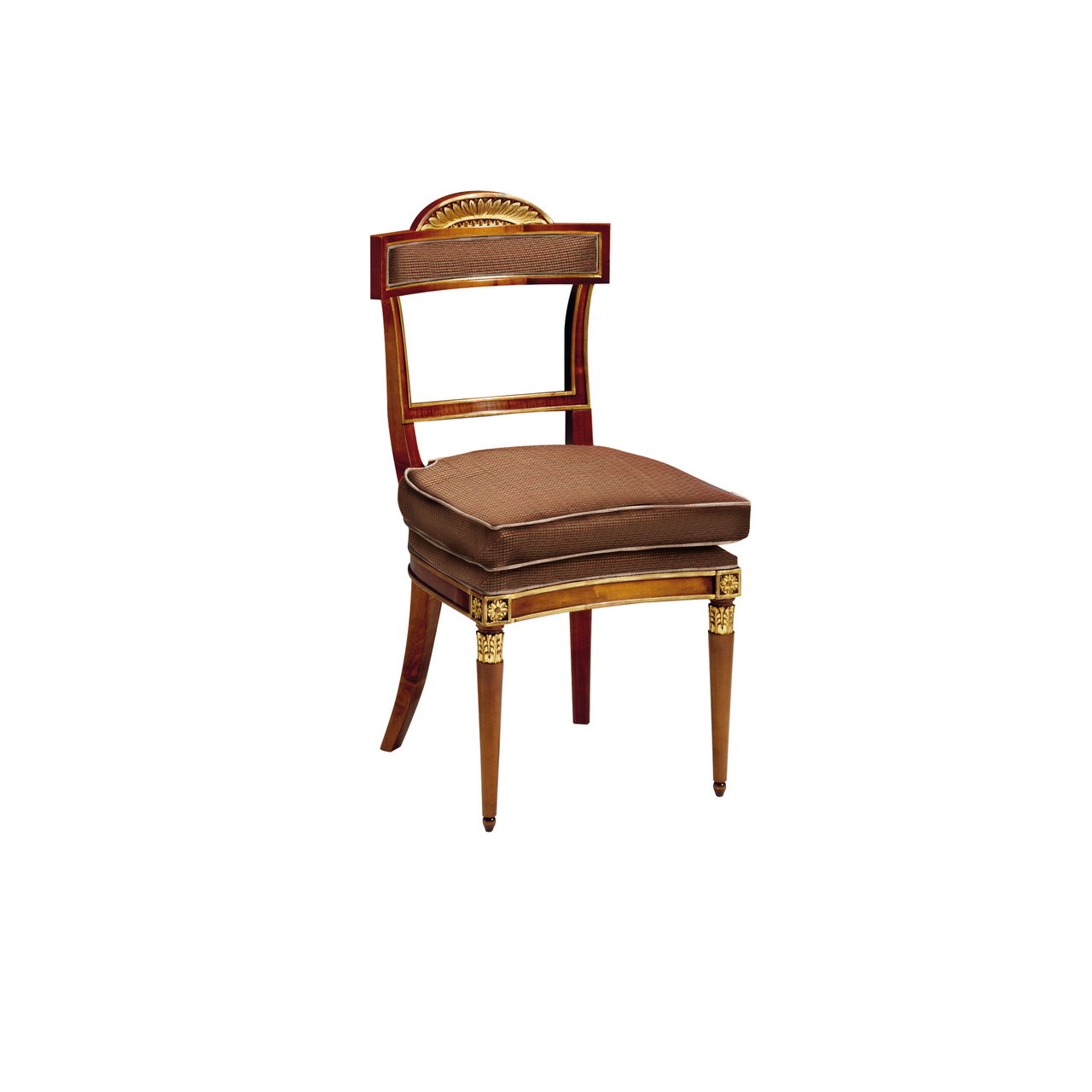 Finish: polishing with gold leaf details. Upholstered in fabric.