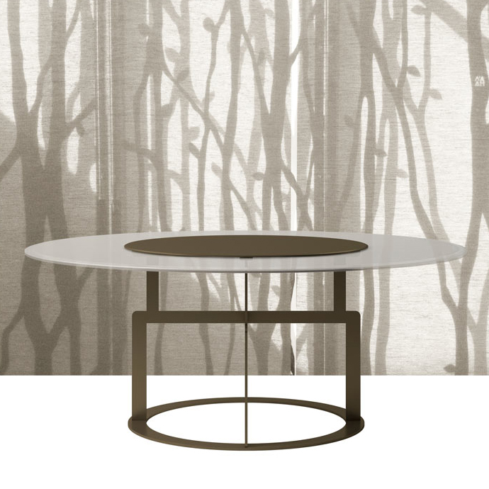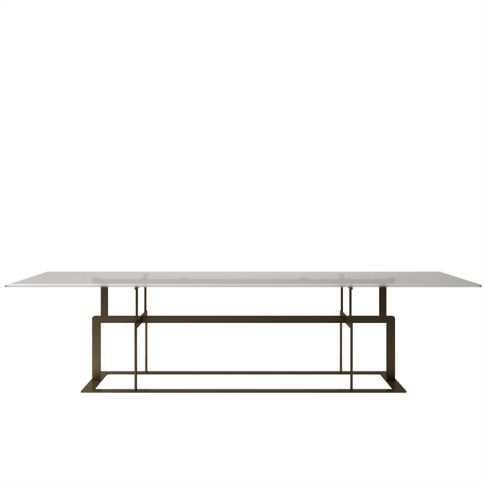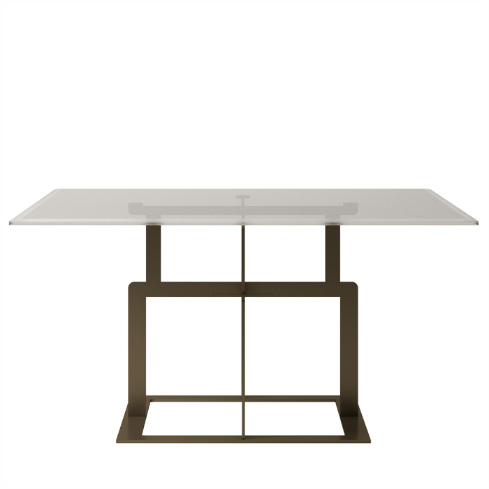 laminated translucent glass with fabric or metal mesh, sandblasted edge, metal structure.