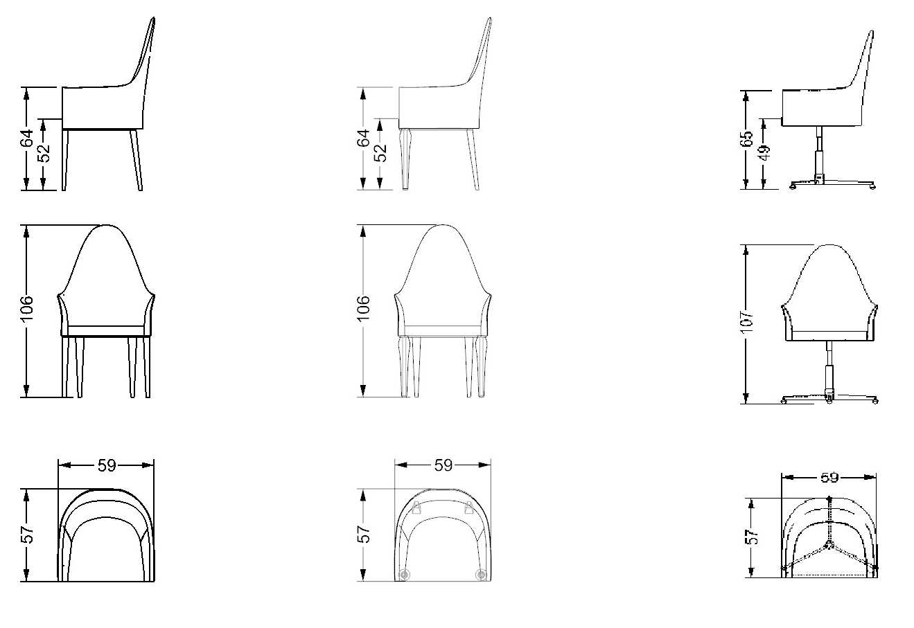 Chair with foamed wooden structure. Upholstery in velvet or leather. Legs in black matt or shiny lacquered wood or Canaletto walnut. Diamond quilting available for seat, back and rear-back.
