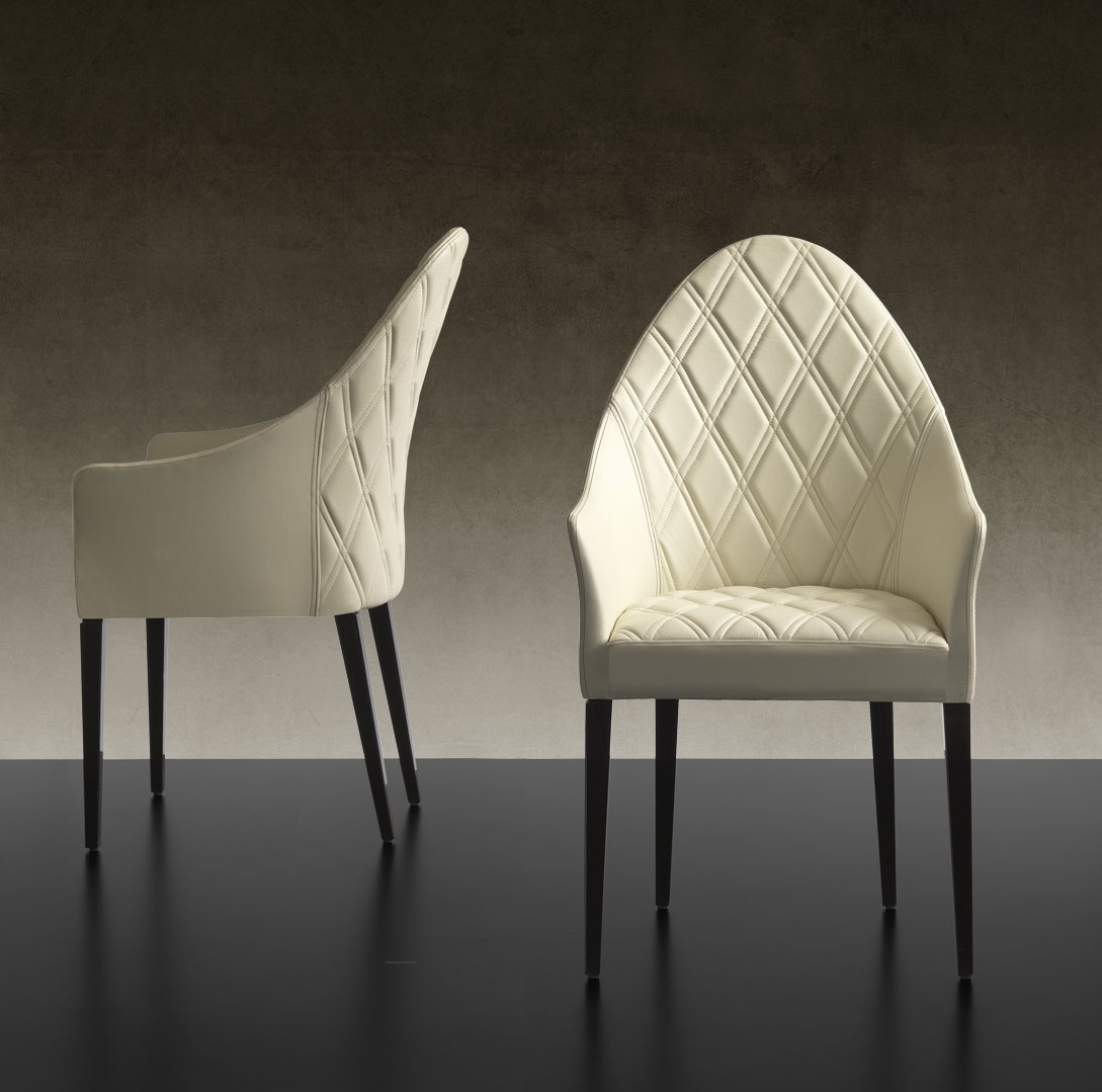 Chair with foamed wooden structure. Upholstery in velvet or leather. Legs in black matt or shiny lacquered wood or Canaletto walnut. Diamond quilting available for seat, back and rear-back.