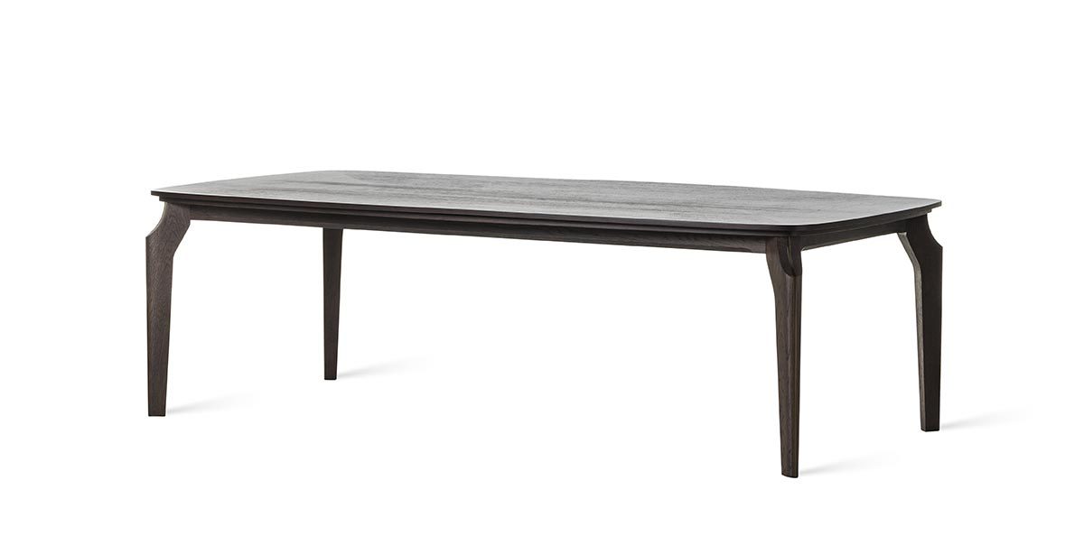 Tablewith structure in wood. Legs with bronzed metal lacquered inserts.