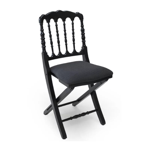 Складной стул в классическом стиле из массива бука с цельнообитыми спинкой и сиденьем из ЛСДП с наполнителем из высококачественного поролона. Нижняя часть сиденья отделана нетканым полотном, плотностью 100 г/м2.