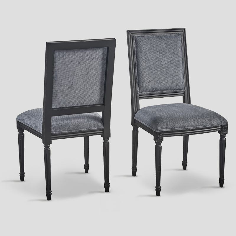 Sedia con struttura in faggio finitura laccata e rivestimento in tessuto, Struttura laccata Nero Vissuto Tessuto color Ardesia Blu