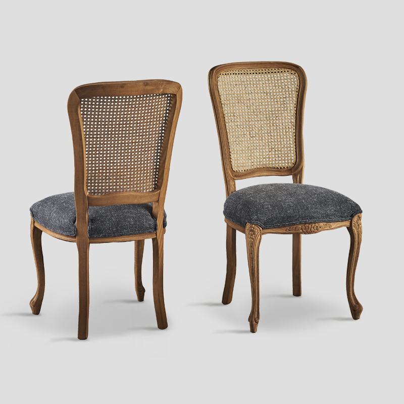 Sedia con struttura in faggio, rivestimento in tessuto con schienale in paglia di Vienna o imbottito, struttura finitura Legno Vintage tessuto color Castano brizzolato