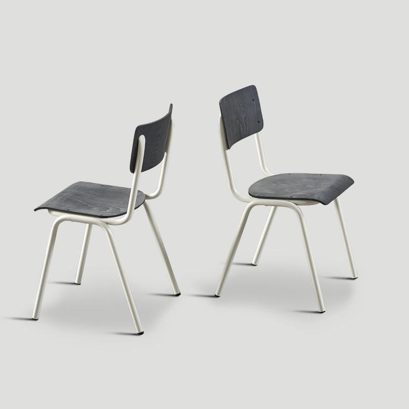Sedia impilabile con struttura in metallo, seduta e schienale in faggio Vintage, Struttura laccata Bianco seduta e schienale Nero Vintage