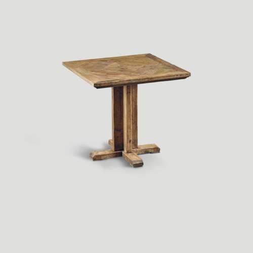 Tavolo quadrato in legno vecchio riciclato con base a croce, top a quadrotta finitura Naturale