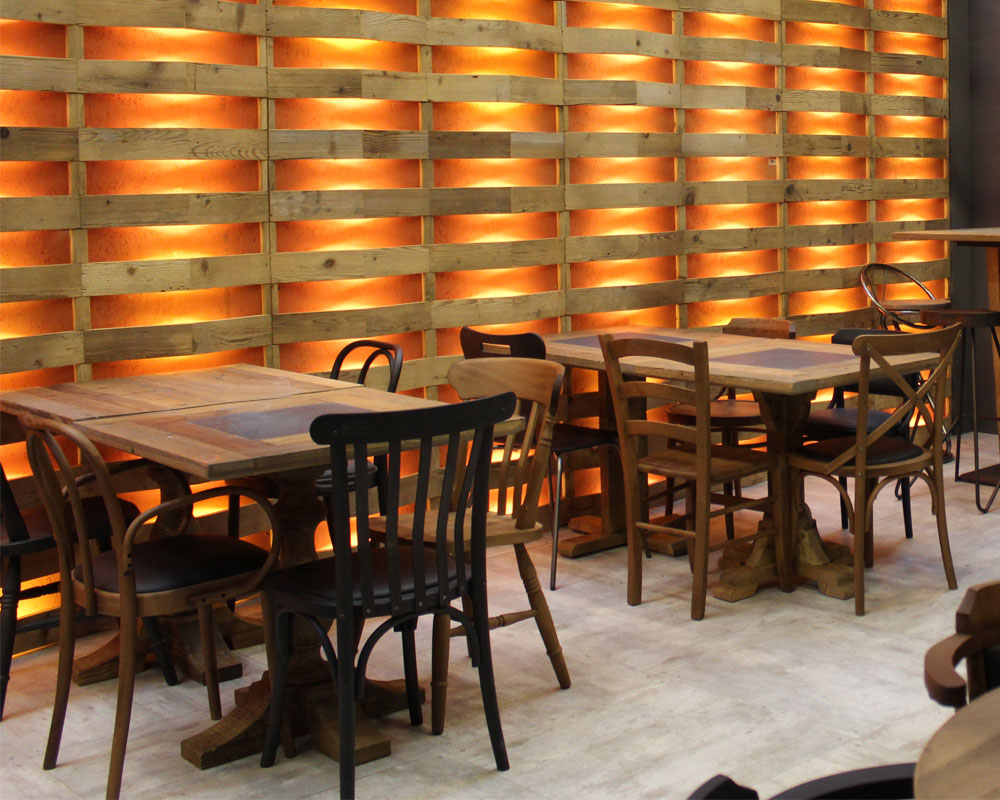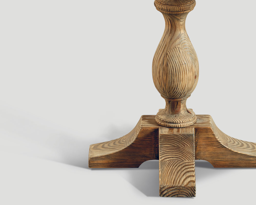 Tavolo quadrato in legno vecchio riciclato con base tornita, top in massello finitura Naturale