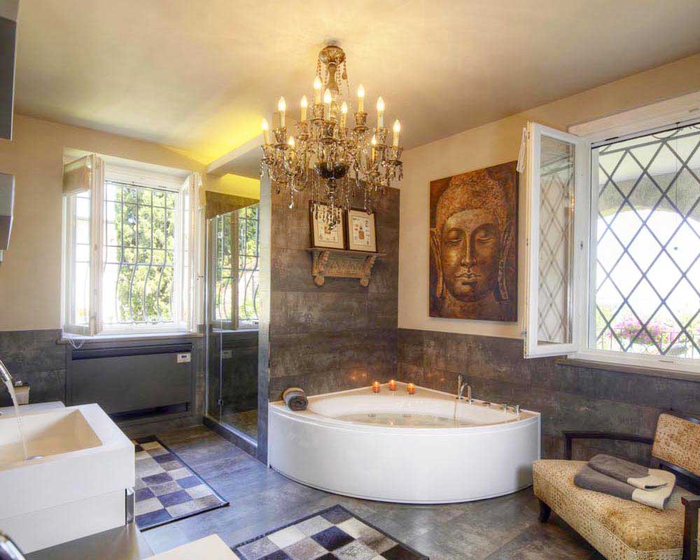 Lampadario in metallo con 10 punti luce, cristalli e pendenti color Fumo