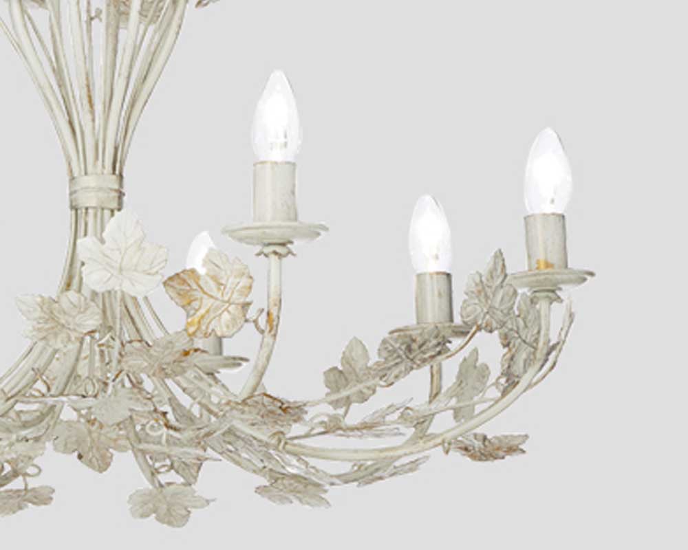 Lampadario 8 punti luce, in metallo, finitura avorio.
