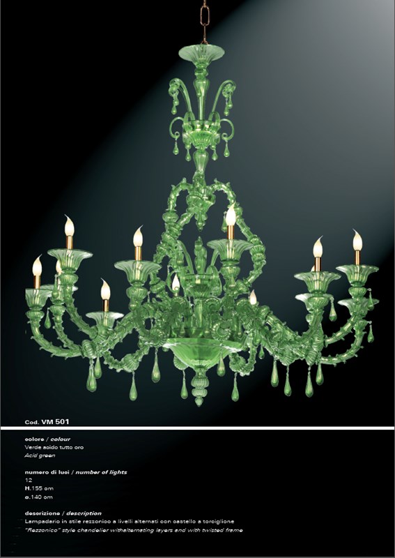 Lampadario in stile rezzonico a livelli alternati con castello a torciglione, 12 luci