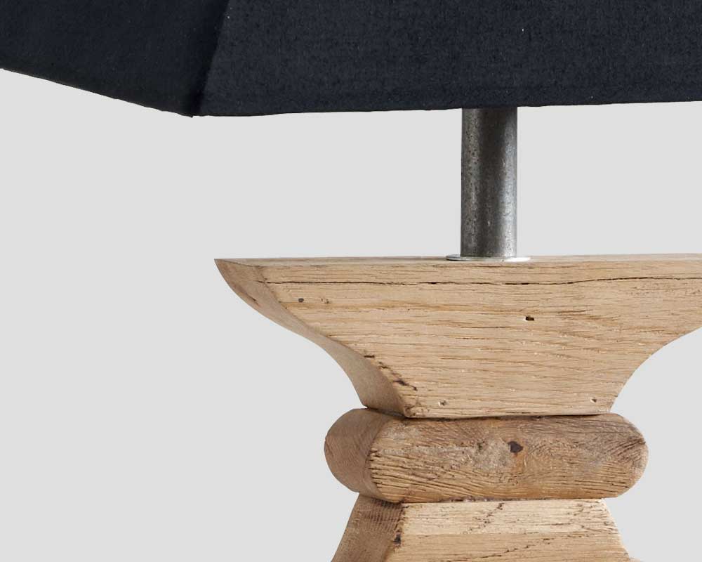 Lampada da tavolo in rovere finitura naturale con paralume rettangolare in tessuto nero