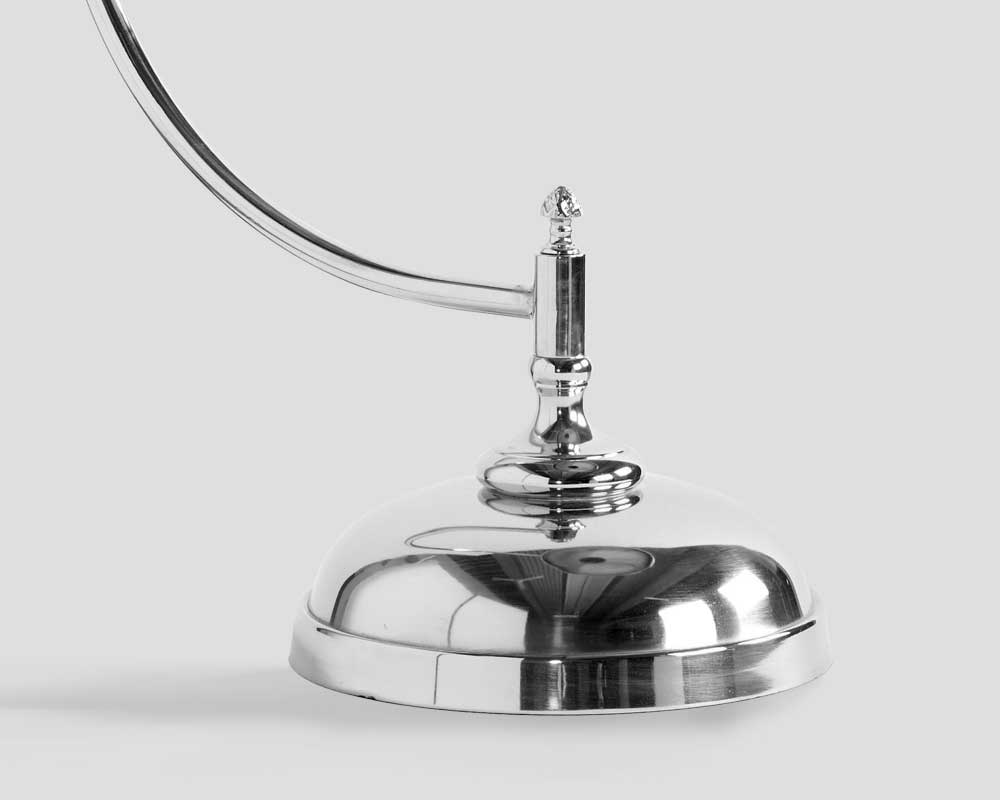 Lampada da tavolo orientabile,  in fusione di alluminio, finitura nichel lucido