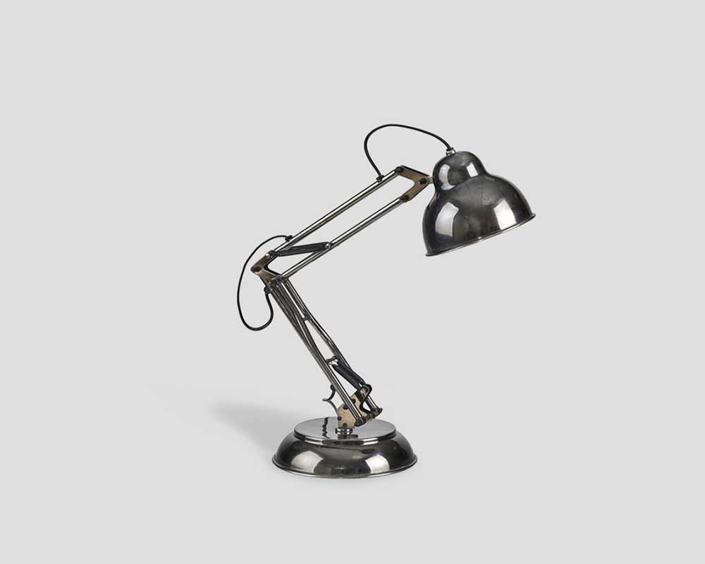 Lampada da tavolo, in fusione di alluminio e ottone finitura nickel lucido.