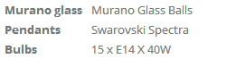 A cascade of polished brass diamond cutted, Swarovski rows and Murano glass balls.