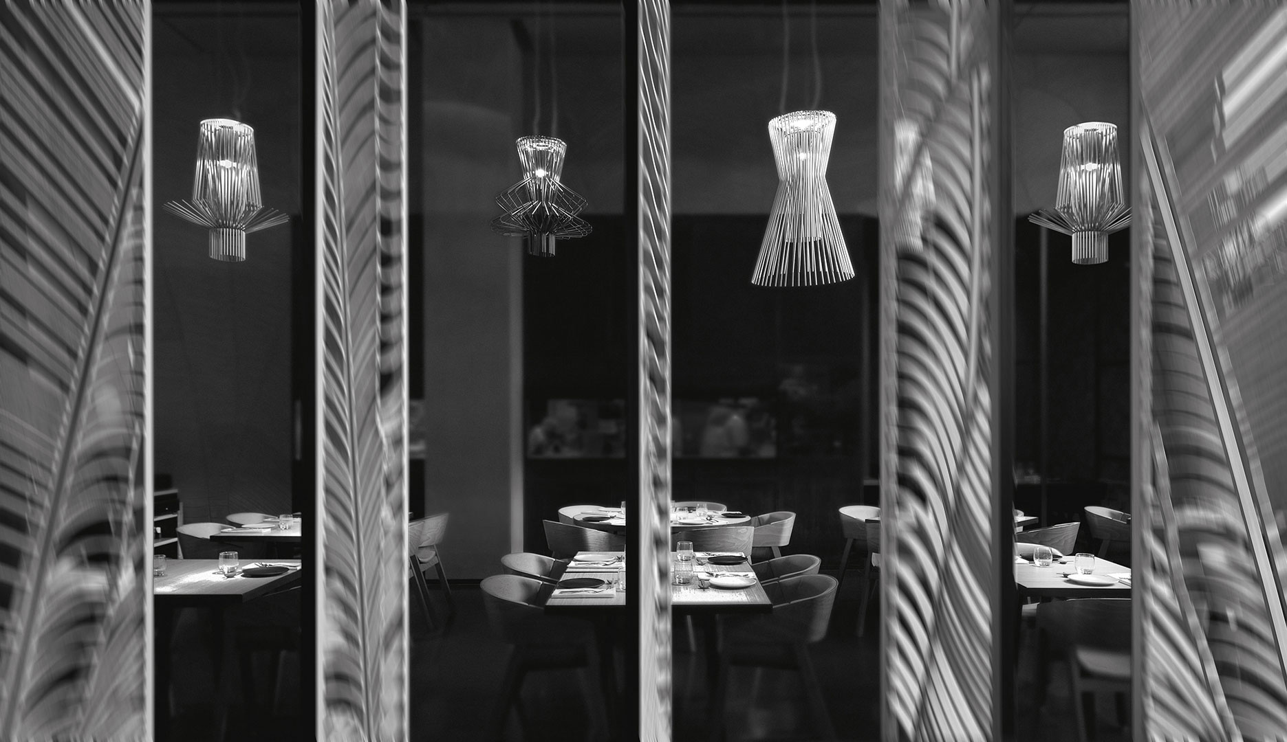 With their altogether special way of distinguishing and light a setting, the Allegro lamps are a concept combining lighting effects with graphic design. A criss-crossing of two different shapes leads to the creation of the Allegro Ritmico suspension lamp, which is distinguished by a high-tech graphite finish.