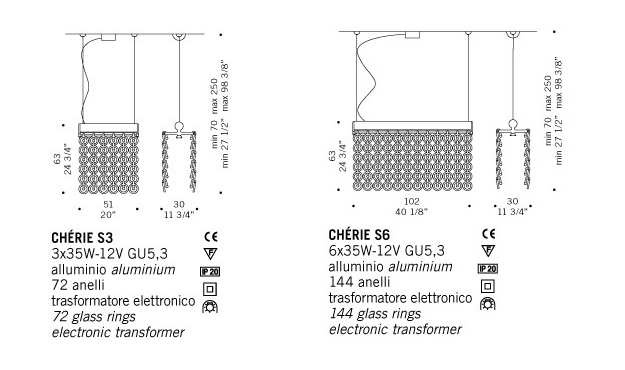Borosilicate glass detailing with crystal effect. Chromed metal fitting. Chérie a modular system that can be extended to a maximum height of 10 m 144 glass ring for sqmt.