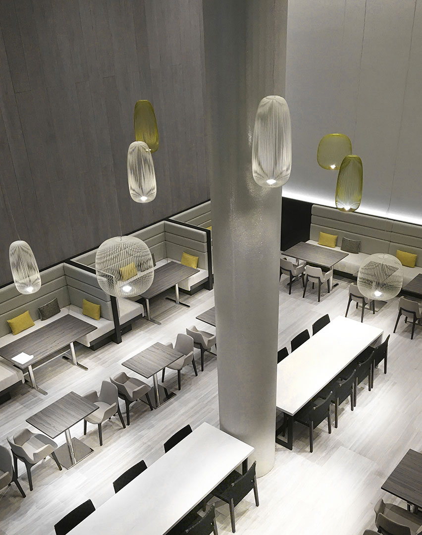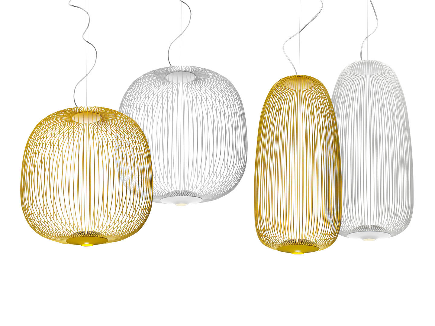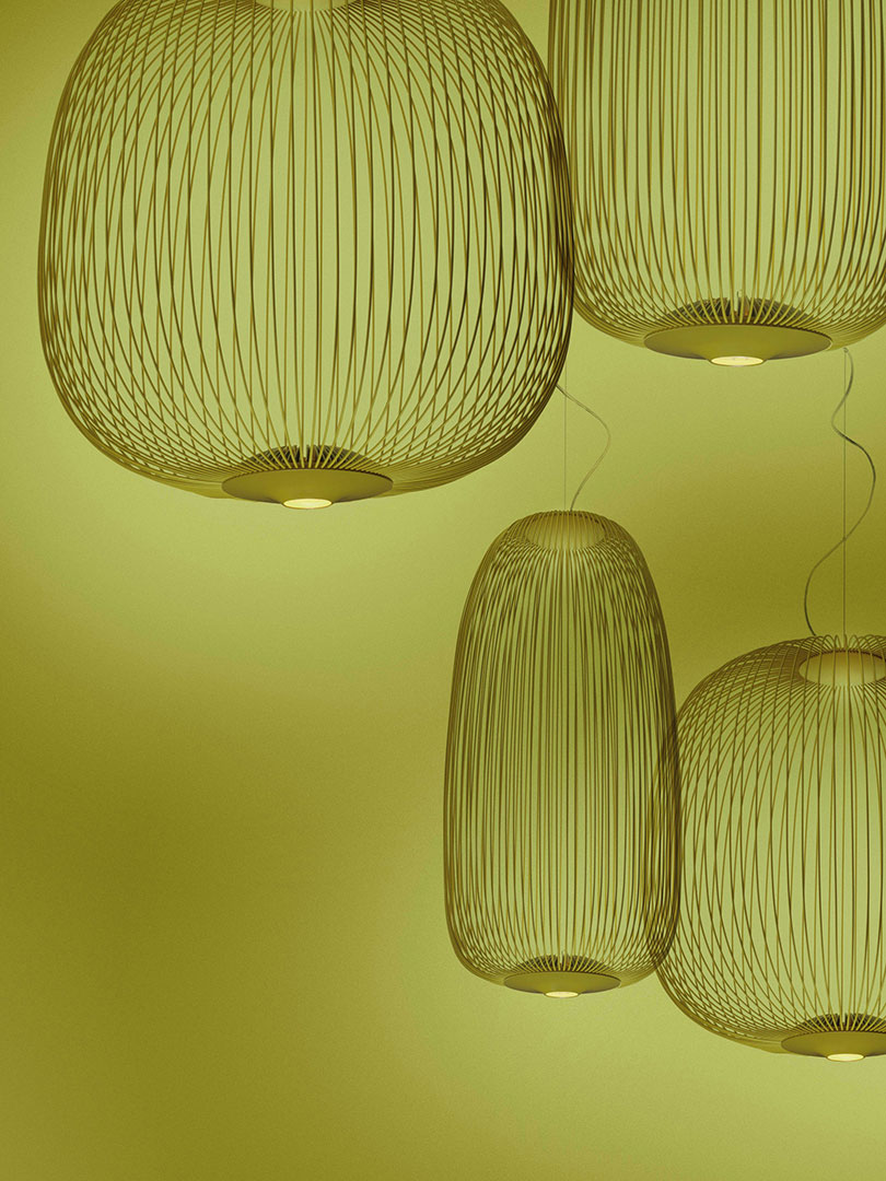 Spokes expresses a feeling of light weight and motion. As if crossing a magical and geometrical mesh, the light filters out from the inside, projecting a kaleidoscope of blocks and voids. With an especially generous volume, the Spokes 2 Large lamp is devised to distinguish all the surrounding space.