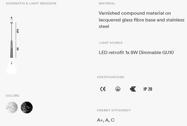 According to a logic that only appears to be random, the Tress Stilo suspension lamp is created by winding a ribbon of composite material using a craft-based process. Its slim shape and focused light make it perfect for emphasising the surface underneath it.