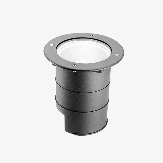 Installation: the luminaire is equipped with a piece of cable with a 2-way connector for 3-conductor cables (H2O STOP) for an easy-to-make connection. Outdoor use requires suitable flexile cables. Installation requires a dedicated box to be ordered separately. It is important to provide a >400mm gravel layer or a drain system (for concrete surfaces) to ensure good drainage and to avoid water stagnation.