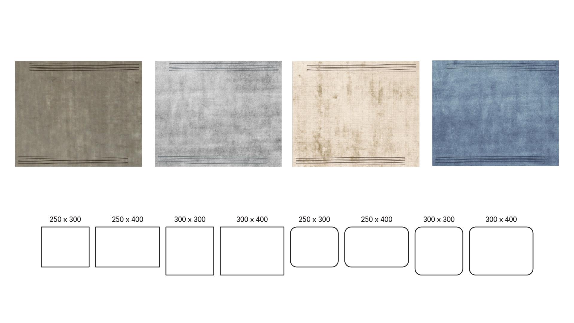Collezione di tappeti realizzati in Europa con il procedimento della tuftatura manuale.Realizzati in quattro nuance di colore, con altezze di vello differenti, con cinque disegni disponibili (plissè, vienna, segno, dune e cerchiotto), sono realizzabili in tre forme: rettangolare, circolare e square-round.