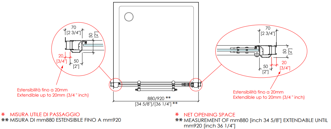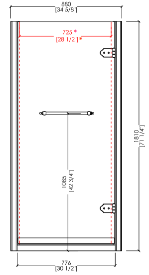 Porta per doccia, disponibile con vetro trasparente, vetro satinato o vetro decorato.