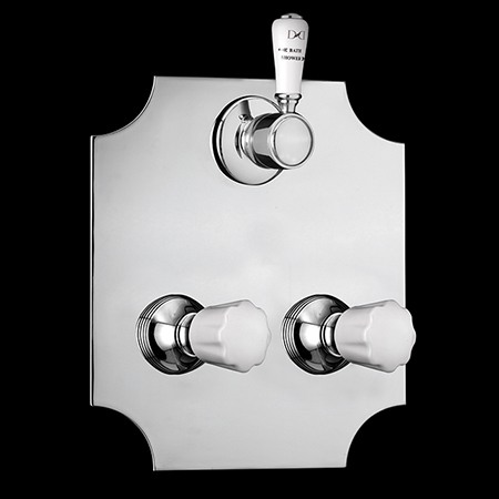 Gruppo doccia da parete con deviatore (da abbinare con bocca di erogazione DDMR321 o simili e soffione doccia AQ 5120-AQ 5910 o simili). Disponibile nelle seguenti finiture: cromo, oro chiaro, nickel lucido, nickel nero, oro rosa e bronzo. Devon&Devon presenta la nuova rubinetteria Morris. Design ricercato unito a richiami anni ’40, rendono Morris immediatamente riconoscibile e d’impatto. Particolare attenzione è dedicata al disegno delle manopole, elemento caratterizzante della collezione: forma cilindrica e svasata, retrò e contemporanea. Il contrasto cromatico tra il corpo metallico, realizzabile nelle nuove finiture nickel nero, oro rosa e bronzo, e la ceramica bianca delle manopole, esprimono un’estetica eclettica e al tempo stesso rigorosa. La gamma si compone di: rubinetto tre fori e monoforo per lavabo e bidet, gruppo vasca a muro, gruppo vasca da bordo vasca e gambe a terra, bocca erogazione, rubinetto d’arresto e deviatore con manetta in porcellana da incasso.
