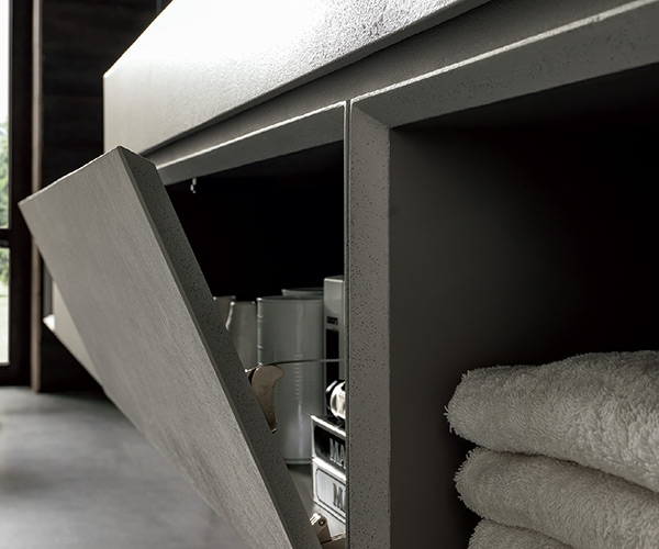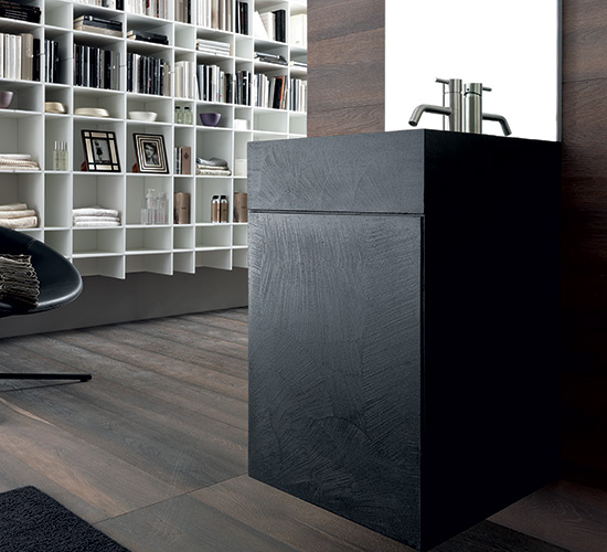 I forti volumi di Infinity caratterizzano uno spazio bagno essenziale e contemporaneo. Questo programma comprende una serie di basi e pensili caratterizzati da una scocca realizzata in folding, una tecnica che permette di costruire il mobile partendo da un unico pannello laccato o impiallacciato, di spessore 16 mm, che viene inciso e piegato più volte su sé stesso ottenendo una scocca finita a vista su tutti i suoi lati e senza giunture visibili: i bagni Infinity non hanno bisogno di ulteriori orpelli per esprimere il proprio essere.