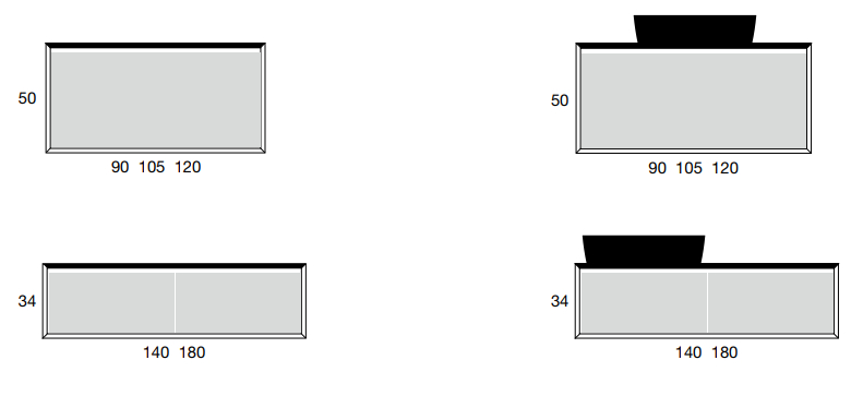 | Глубина 51,5 cm, Высота 34/50 cm, Ширина 90/105/120/140/180 cm. |